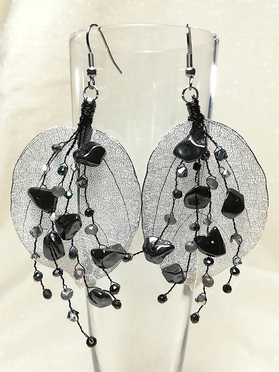 Real leaf earrings | silver with Hematite