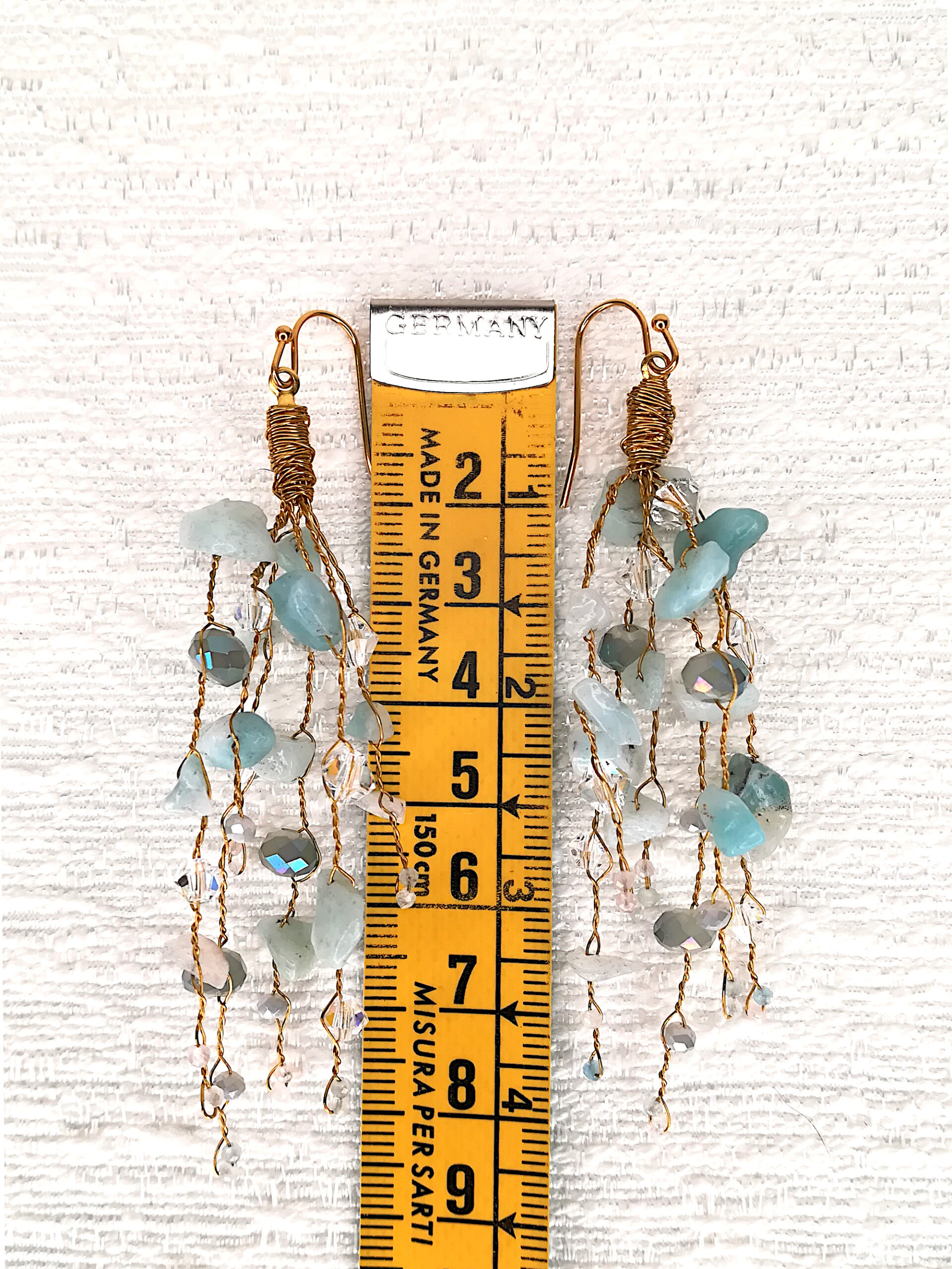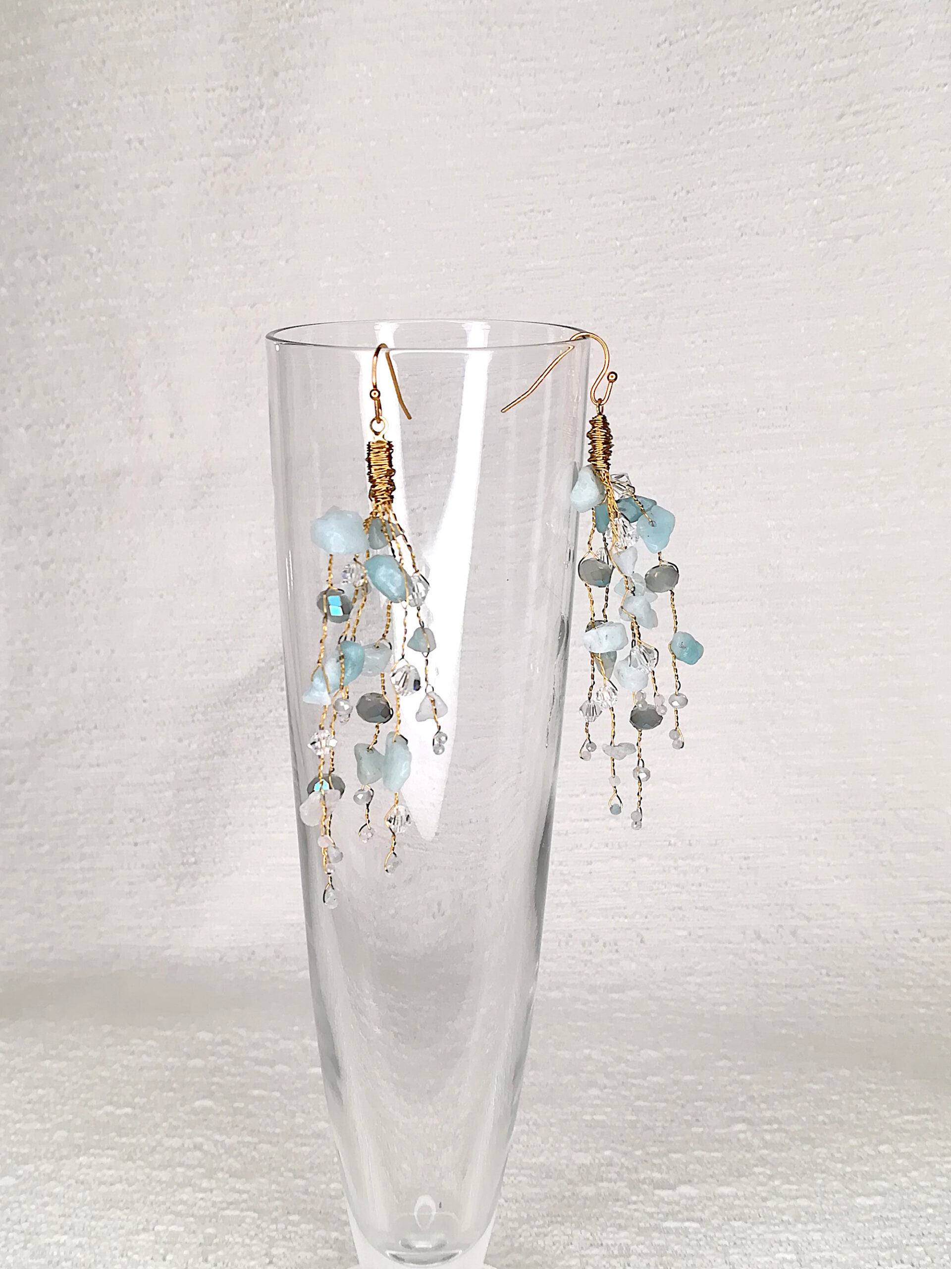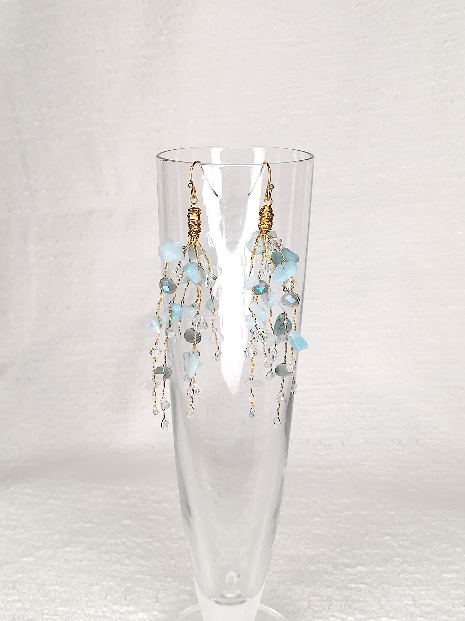 Be the first to review “Chandelier earrings | gold with Aquamarine, Amazonite & crystals”