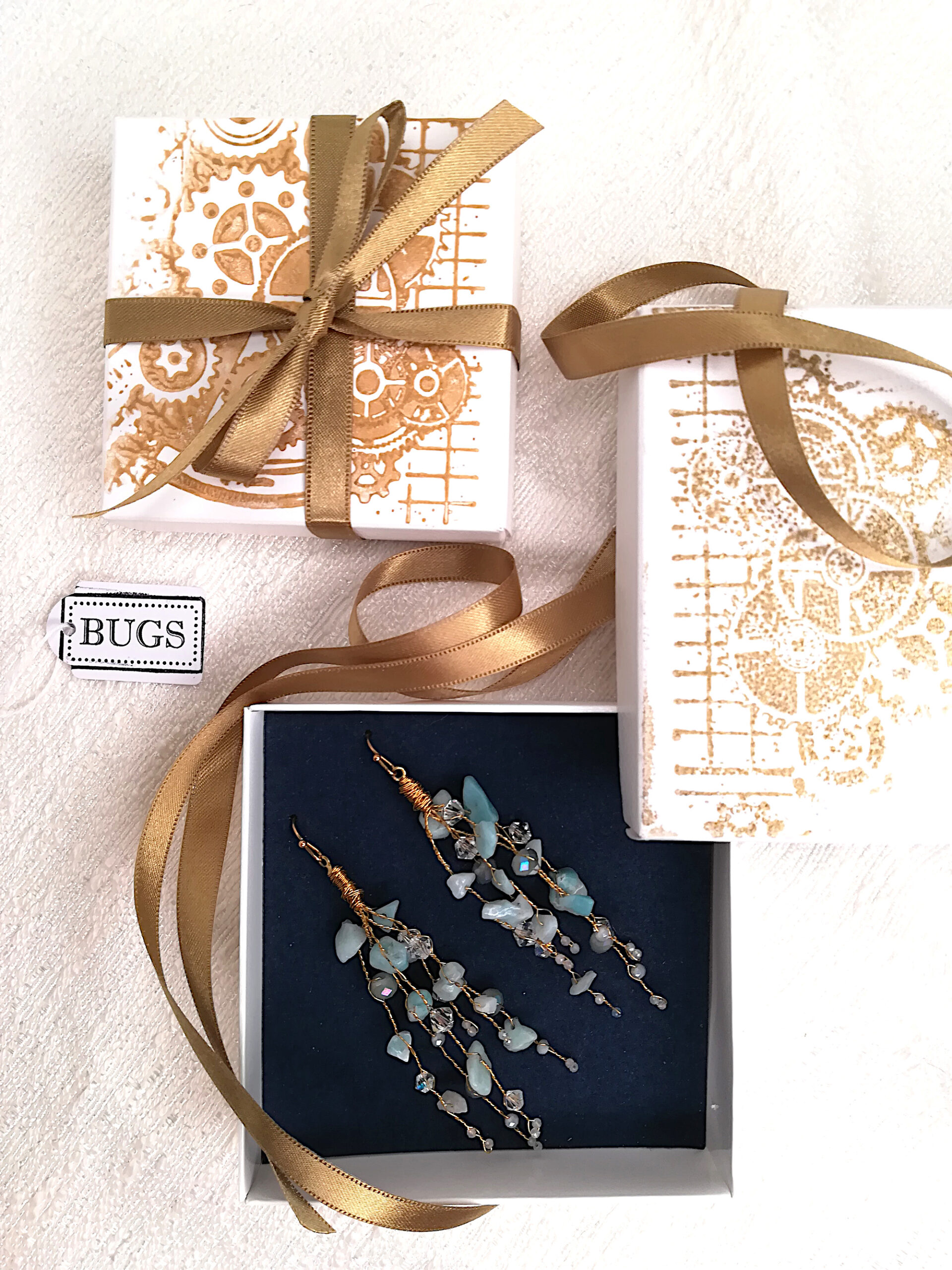 Each item is individually gift-wrapped in a hand-decorated jewelry gift box with a beautiful satin ribbon. They are ready to be handed since we do not include price receipts in the package. We are also happy to ship directly to the recipient. If you would like a gift note included in the package, please leave the text of the note in the “Add a note to BUGS“ message box at checkout.